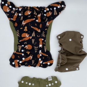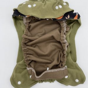 Dieses innovative Outfit besteht aus einem Body, der an eine Windel geknöpft werden kann. Die ergänzende Hose macht das Outfit unauffällig, und gleichzeitig praktisch.